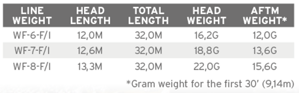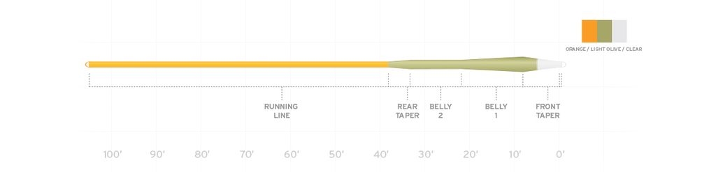 - 5-foot clear intermediate tip (1.25 ips) with floating running line and head for fishing flies just below the surface