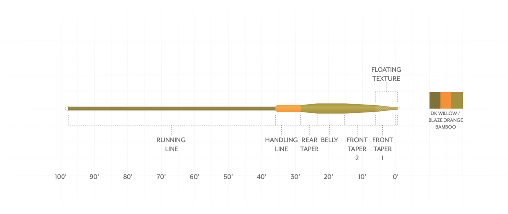 The Trout Strategic 10,5 (head length is 10,5 meter in 5 weight) is designed for medium to large sized rivers.10,5-meter head length is considered a very good around, versatile length for most types of dryfly fishing. The head length is short enough to work well in tight spots, and long enough to excel where distance is necessary.