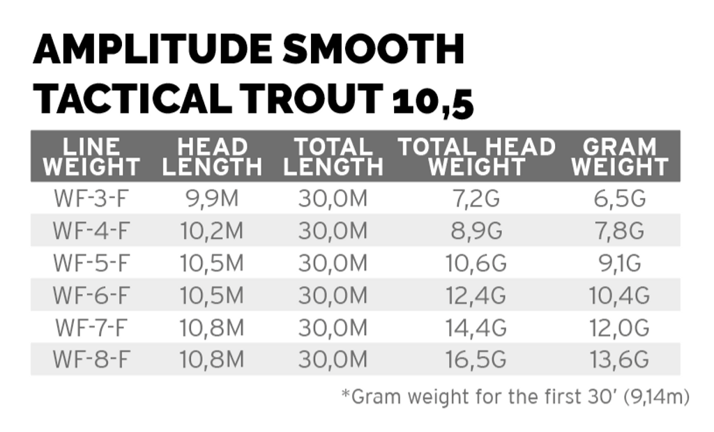 The Trout Strategic 12,5 (head length is 12,5 meter in 5 weight) This is the casters line. This line is designed for medium to large sized rivers, or for those who simply enjoy fishing lines with longer heads. The longer head allows the experienced angler to cast further with optimal control. This is a go to dryfly line for experienced anglers who fish the larger rivers.
