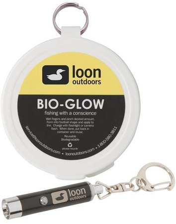 Wet fingers and remove Bio-Glow from container. The amount depends on the weight of the flies being fished. Roll Bio-Glow into a football shape and apply to leader at desired depth. Charge Bio-Glow with UV Mini Lamp. After fishing, remove Bio-Glow from leader and return to container.