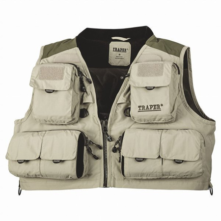 Kamizelka Dakota jest uszyta z najwyższej jakości nylonu. Wewnątrz jest wykończona siatką cyrkulacyjną. Wygodne, miękkie wstawki w ramionach i kołnierz z podwójnego neoprenu zapewniają komfort użytkowania. Kamizelka posiada 13 kieszeni. Obszerna, zasuwana kieszeń na plecach. 10 kieszeni w przedniej części i 2 kieszenie wewnętrzne. W skład wyposażenia wchodzą: uchwyt do podbieraka, dwa uchwyty na wędki, napy do przechowywania przynęt, dwa kryte, rozciągliwe zaczepy na szczypce i obcinaczki oraz D-ringi.