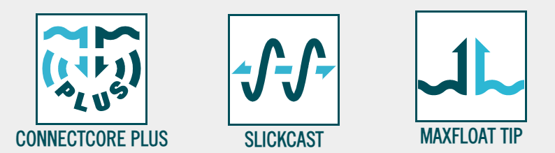SlickCast - Technologia SlickCast tworzy najbardziej gładką, najtrwalszą powłokę na rynku - wytwarzając najmniejsze tarcie, jakie kiedykolwiek zmierzono na lince muchowej.