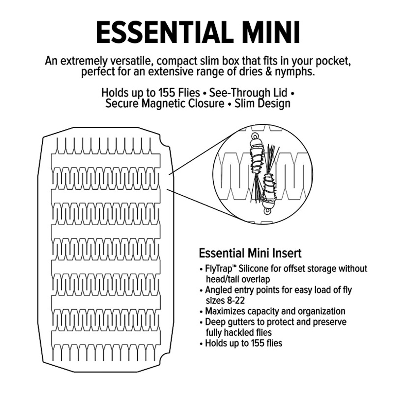 Niezwykle wszechstronne, pojemne, smukłe pudełko idealne na szeroką gamę suchych much i nimf. Nazywamy je Essential Fly Box nie bez powodu, każdy wędkarz go potrzebuje. To pudełko może pomieścic wszystko, a wędkarze mogą je skompletować tak, jak chcą. Dodaj trochę wszystkiego - suche muchy, nimfy, buggery i ruszaj nad wodę.